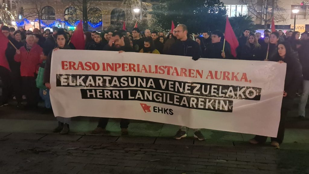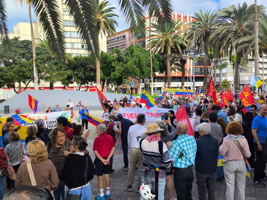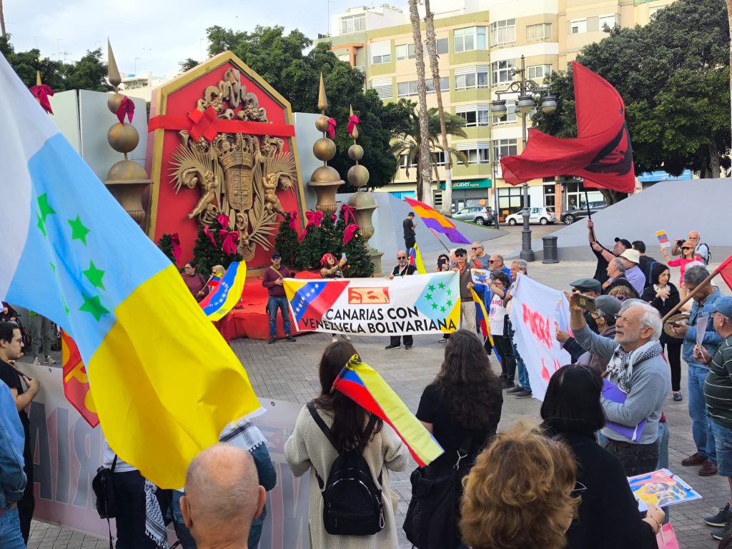 En Barcelona, Bilbao, Burgos, Cádiz, Donostia, Gran Canaria, Lanzarote, León, Madrid, Murcia, Palma de Mallorca, Pamplona, San Sebastián, Sevilla, Tenerife, Valencia, Valladolid, Vitoria-Gasteiz y Vigo, entre otras ciudades, miles de ciudadanos se lanzaron a las calles en defensa de la soberanía de Venezuela y en solidaridad ante los ataques militares de EEUU.
